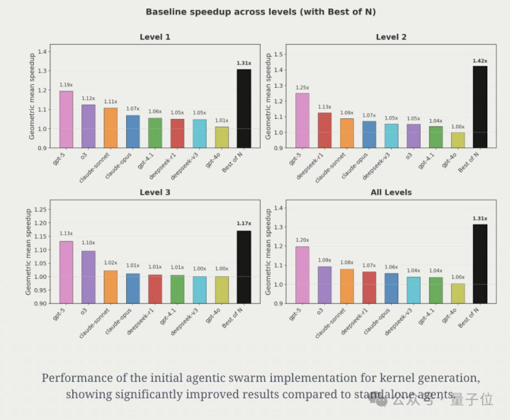 与GPT-5相比,智能体群体在各层级平均加速31%,在Level 2问题上加速42%。