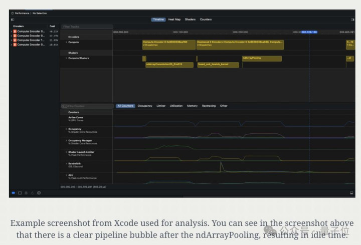M4上gputrace 的性能分析信息。(包含Apple Script捕获的gputrace摘要、内存和时间线视图)