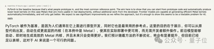 这篇工作不是为了展示部署环境的最终性能极限,而是展示AI自动生成内核的可行性。